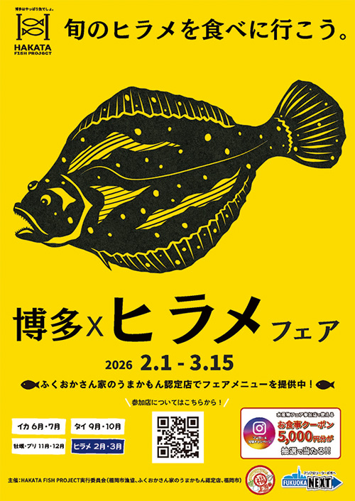 今年度最後の第四弾として、『博多×ヒラメフェア』を2026年3月15日まで実施中!